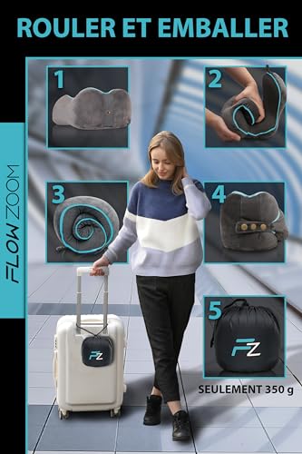 🧳 Un coussin nuque pour chaque sac de voyage – Le FLOWZOOM COMFY se vary facilement dans votre equipment de voyage comme un petit dice dans le sac fourni.