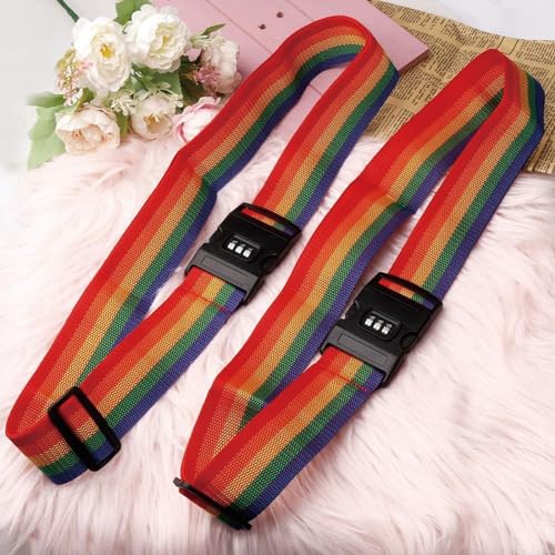 Lot de 2 Sangles pour Bagage,Sangle Valise, Sangles à Bagage,Global Travel Equipment,pour Valise Bagage Sac de Voyage Accessoire de Voyage(Couleur Arc-en-Ciel),2m x 5cm