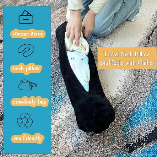 Rejckims Stuffable Clothing Travel Neck Pillowcase, Travel Neck Pillow Stuffable with Garments, Stuffable Travel Pillow, Airplane Essentials Accessories Fits 3 Days’ Essentials