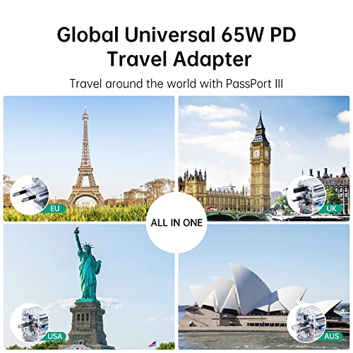 Zendure 65W PD Adaptateur de Voyage Prise Universel USB C/A Charge Rapide Chargeur Mural International Adaptateur Compatible pour Laptops MacBook Pro iPad AirPods Pro iPhone